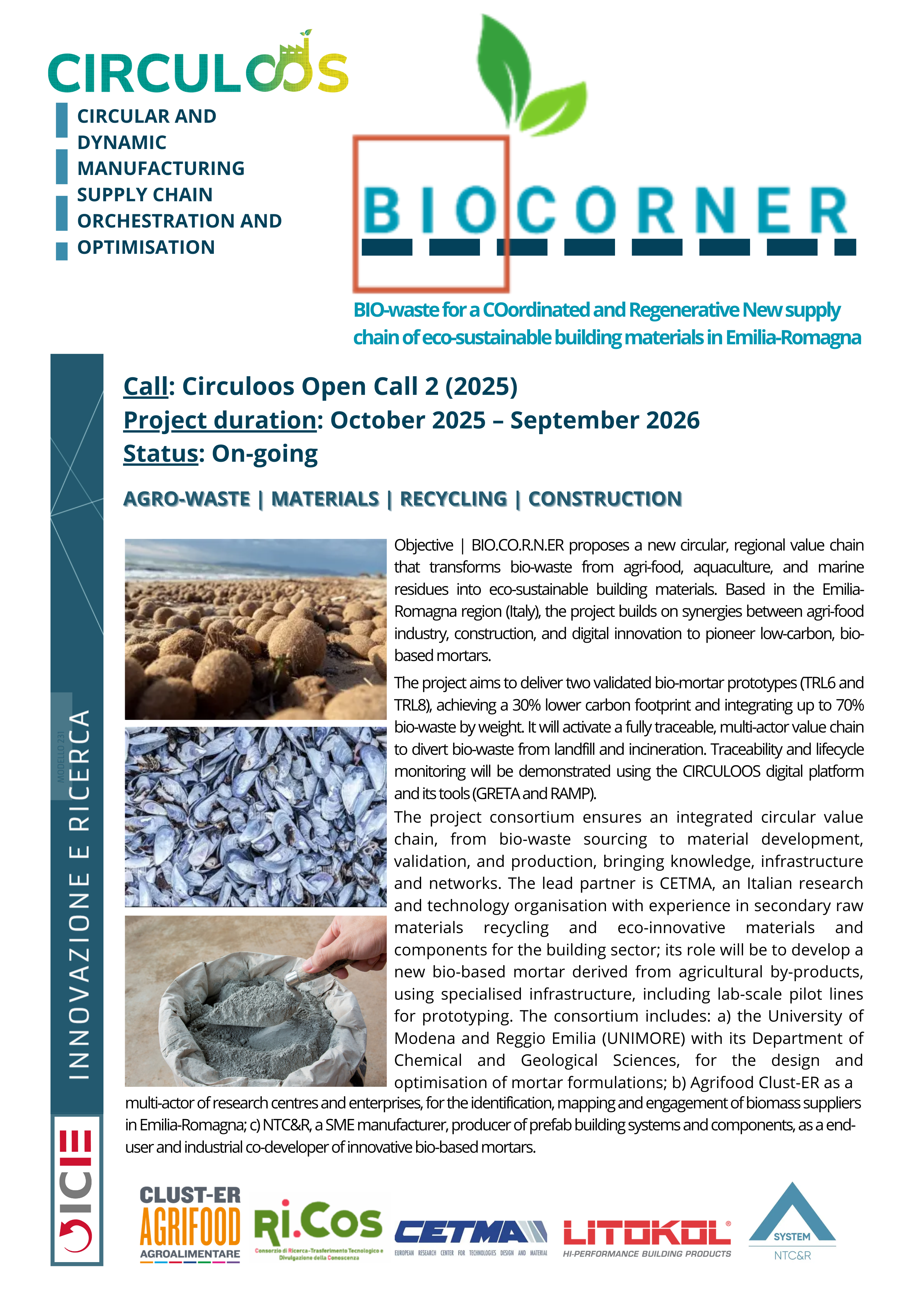BIO-waste for a COordinated and Regenerative New supply chain of eco-sustainable building materials in Emilia-Romagna